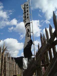 するとすぐに殿の旗やら、看板やらが見えます。