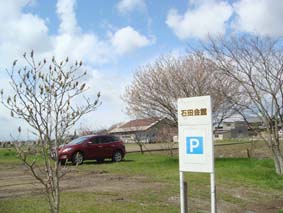 ここに車をとめて歩きます。(石田会館まで本の数分)