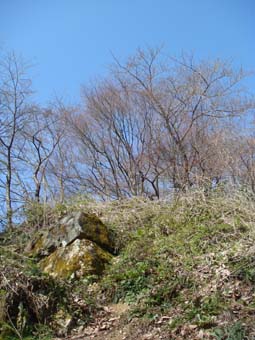 鬱蒼と木々に囲われ、軍議に使ったと言われる石が二つあるだけの淋しい陣跡でした。